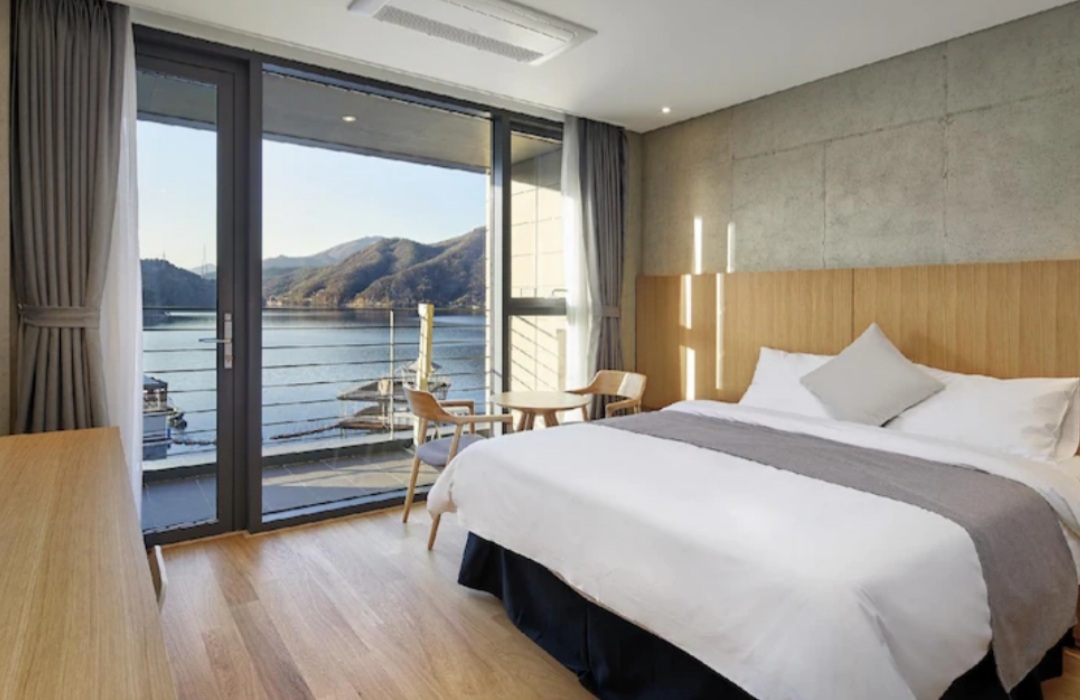 가평의 호텔하우스는 우선 오션뷰가 특출하기로 유명한 곳입니다. 정확히는 바다가 아니라 강이긴 하지만 워낙 넓고 푸른색을 띄고 있어서 오션뷰라 착각될 정도입니다.