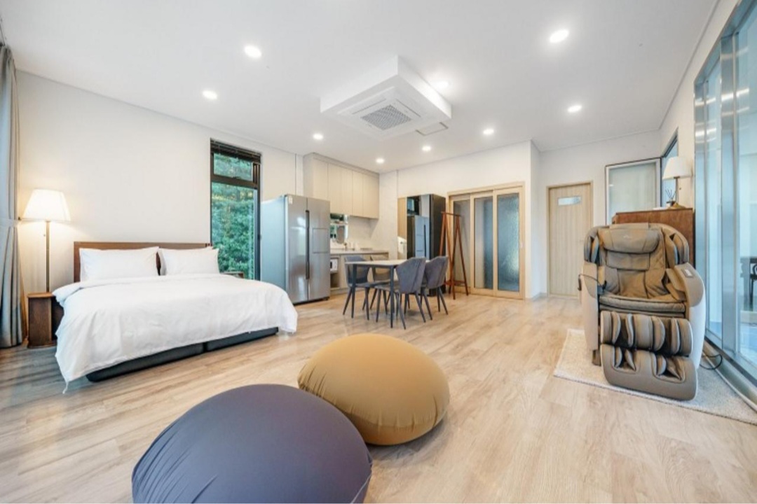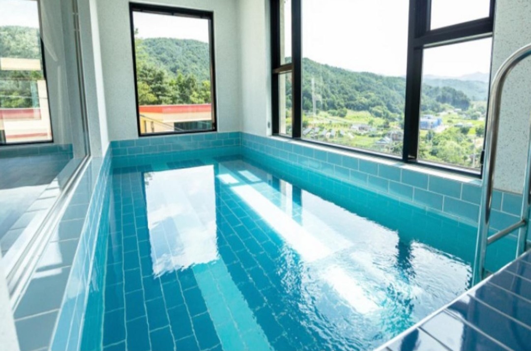 아쉽지만 개별 수영장은 무료가 아닌 유료이며 이용료는 6만원입니다. 이용하실 계획이 있다면 체크인 하루 전날까지 미리 숙소에 말씀을 하셔야 합니다. 수영장 이용시간은 오후 3시부터 오후10시까지 입니다.