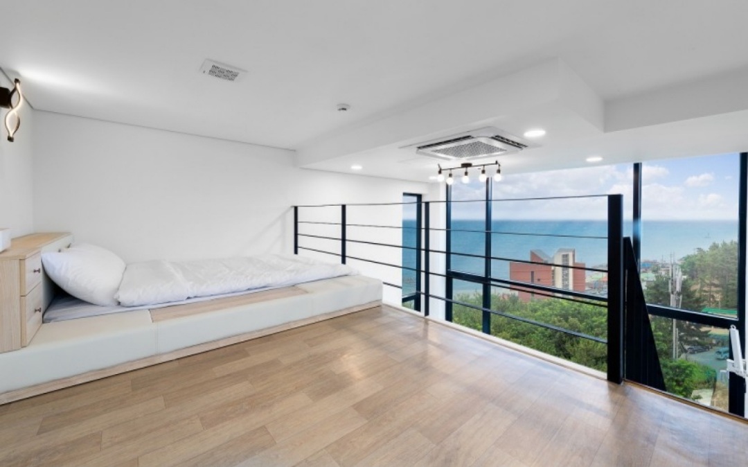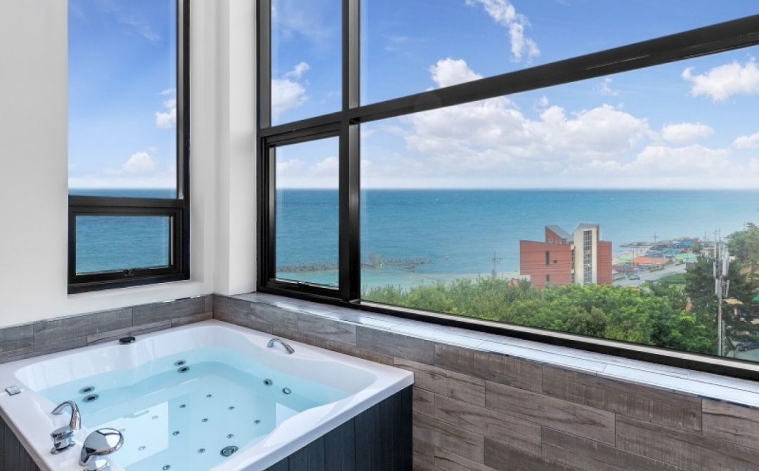 강릉 어뮤즈 스파는 동해 바다 해변가 바로 앞에 위치해 있기 때문에 오션뷰가 잘 보이는 펜션입니다. 다만 3층 이상으로 배정 받으셔야 오션뷰가 보입니다.