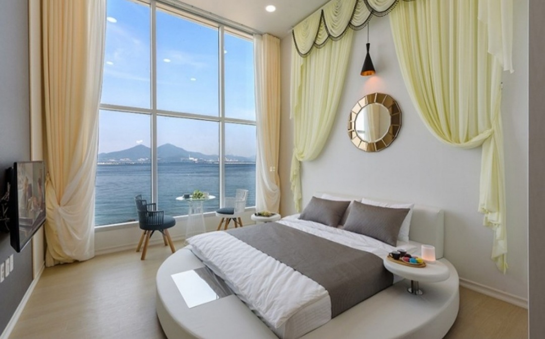 침실에서 잠드는 순간까지도 바다를 보며 주무실 수 있지만 아침에 눈이 부실테니 주무시기 전에는 커텐을 치고 주무시는걸 권해드릴 정도입니다.