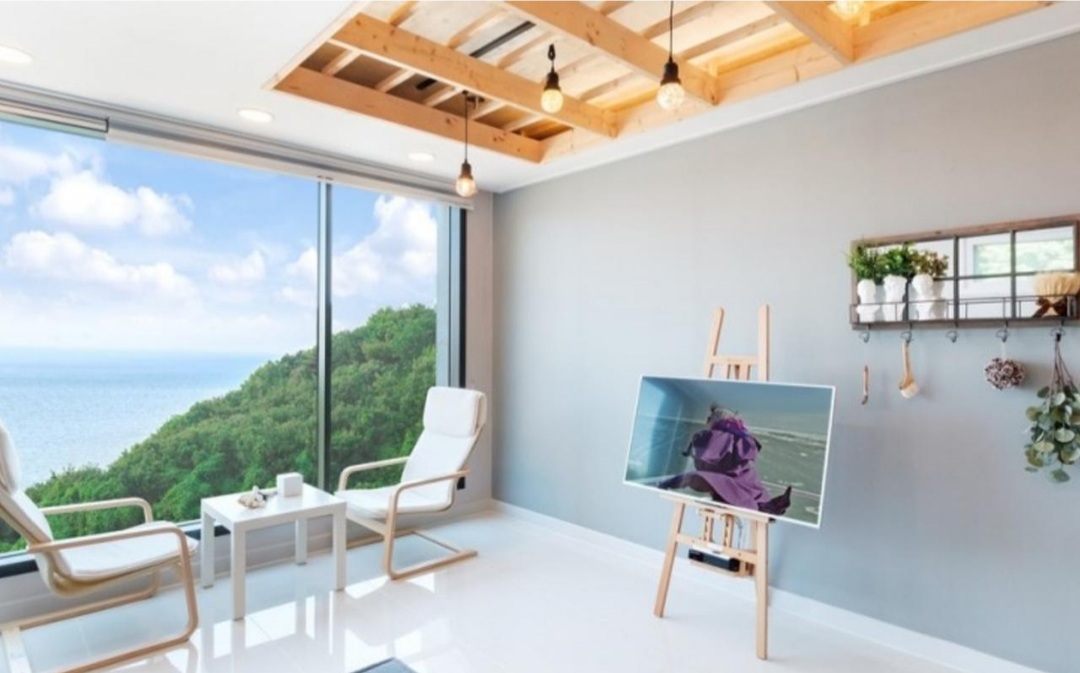 타입에 따라 다르지만 거실에 있는 의자에 편히 앉으셔서 티타임 가지며 멋진 오션뷰를 감상하셔도 좋을거 같습니다.