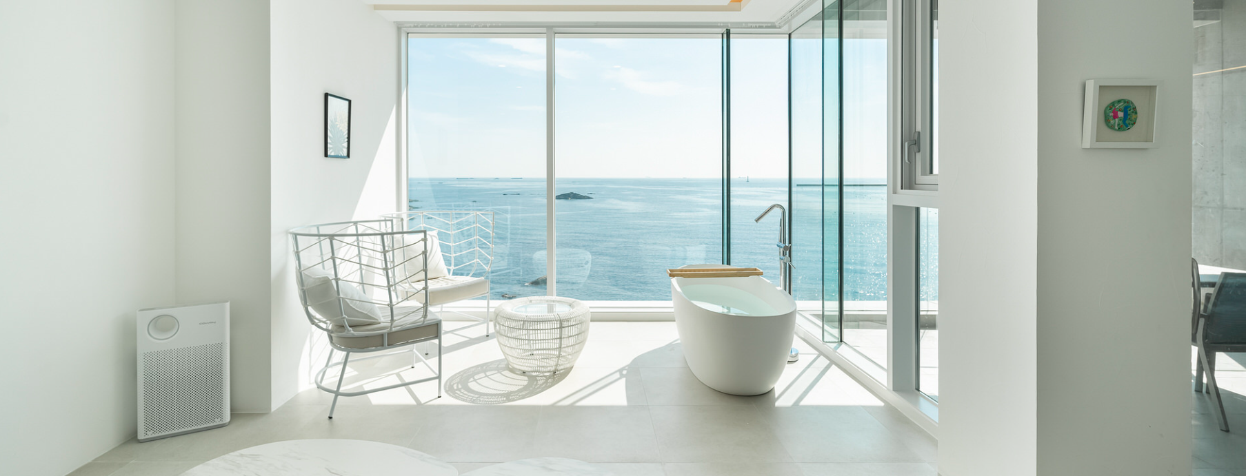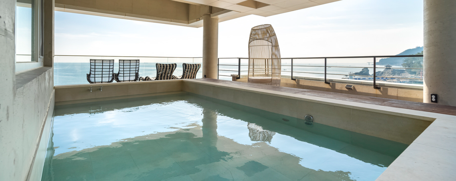 아쉽게도 기장 앞바다는 수영을 즐길 수 없는 바다라는 단점이 있지만 타이드어웨이 펜션은 단체용 인피니티 풀이 있으며 타입에 따라 개별 수영장도 구비되어 있습니다. 그것도 바다를 바라보며 즐길 수 있도록 되어 있어서 속이 뻥 뚫리는 듯한 기분을 받을 수 있을겁니다.