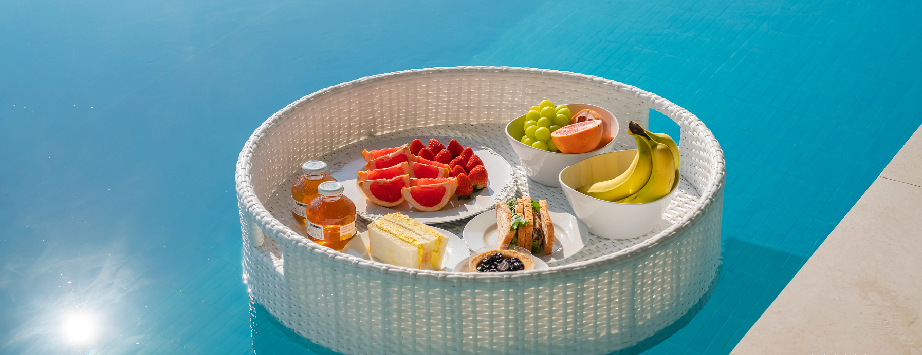 수영장 이용시 플로팅 트레이라고 과일과 간단 간식을 제공해 주는 서비스가 있는데 단돈 1만원으로 이용이 가능하십니다. 또한 웰컴 바구니라고 간단한 간식거리를 제공해 주는데 이것은 체크인 하실때 1회 무료로 제공되기도 합니다.