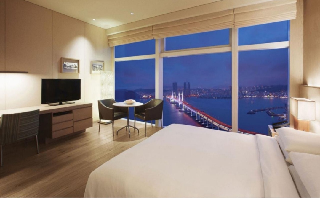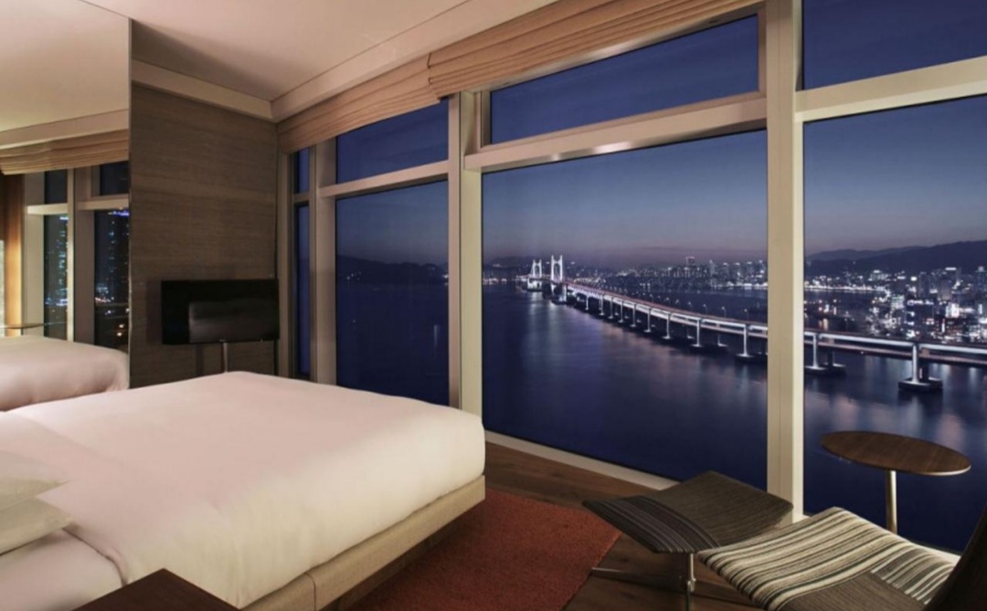 장점 : 멋진 오션뷰와 야경 시티뷰, 특급 호텔의 서비스, 뛰어난 부대시설(수영장, 사우나, 헬스, 뷔페, 레스토랑)