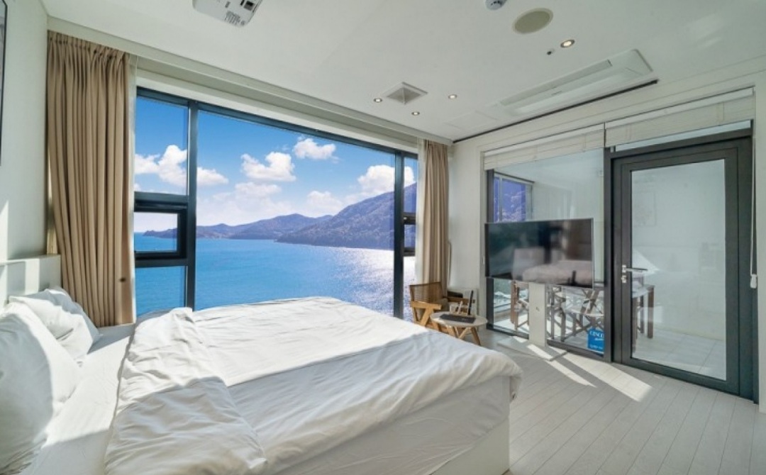 침실에서도 거실에서도 테라스에서도 속이 뻥 뚫리는 바다가 보이지요.