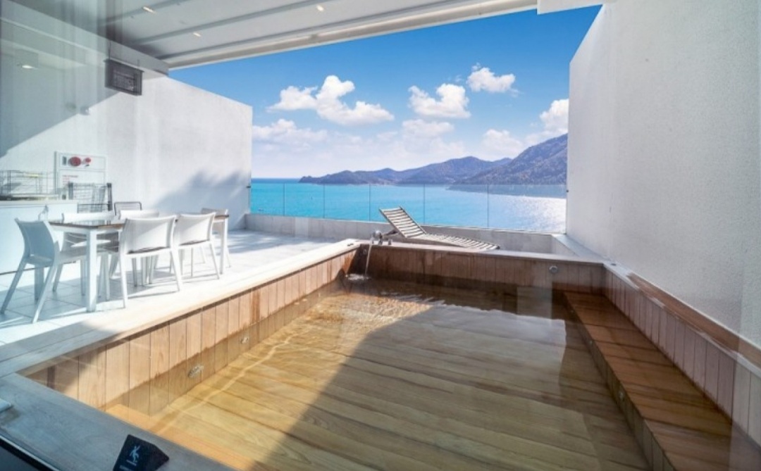 또한 사진 처럼 객실안에 스파가 마련 되어 있는 타입도 있습니다. 바다를 보면서 스파를 즐기면 그야말로 낙원이죠.