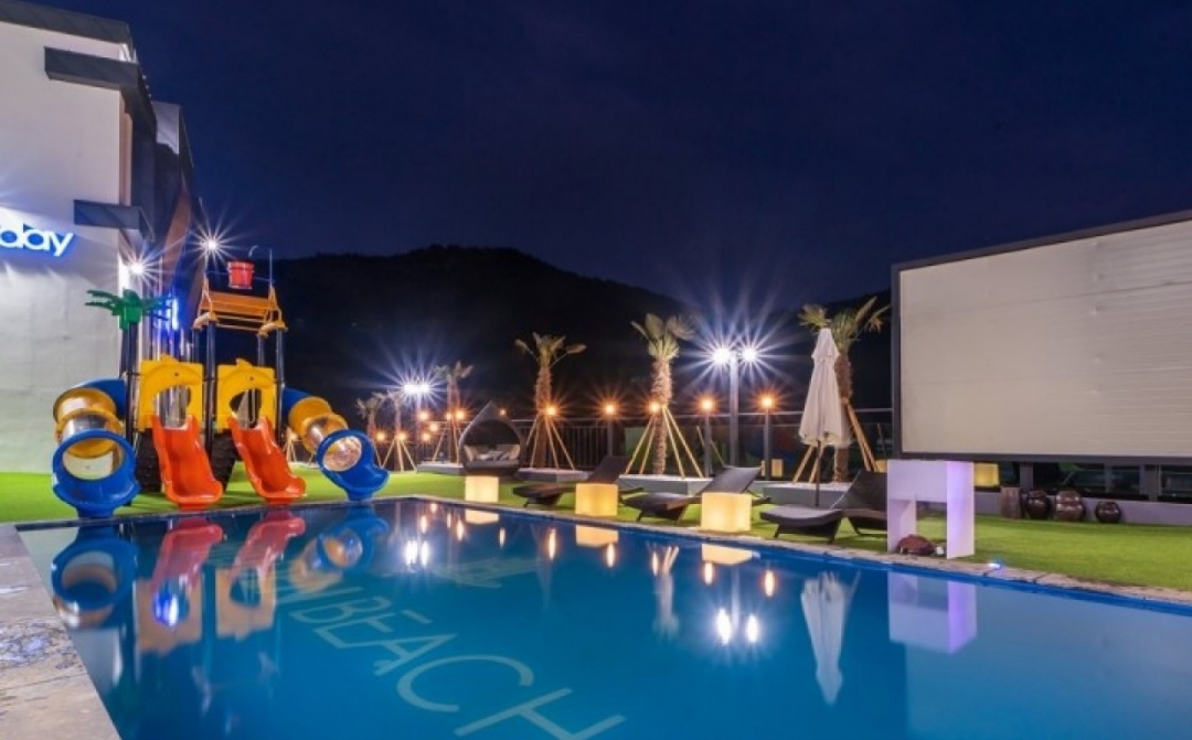 히든비치는 기본적으로 4계절 온수풀이 준비되어 있는 장점이 있습니다. 25m의 넓이로 의외로 넓은 편이며 아이들이 좋아할 수영장 미끄럼틀도 있습니다.