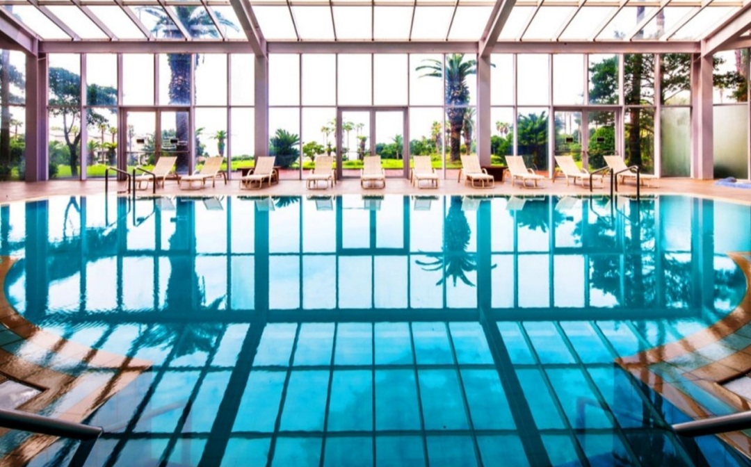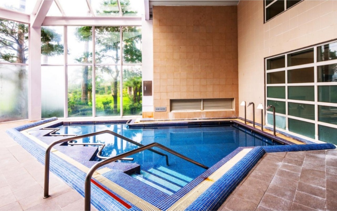 실내 수영장에선 바다는 안보이지만 예쁜 숲속에서 수영하는 기분이 들죠.