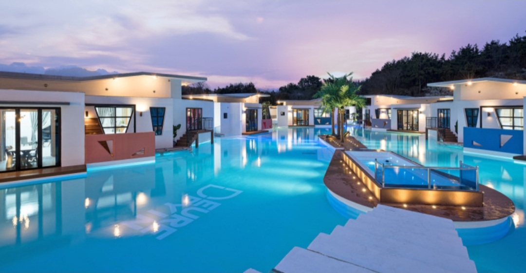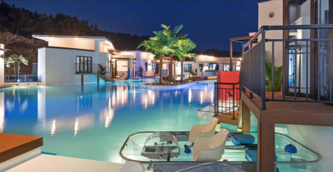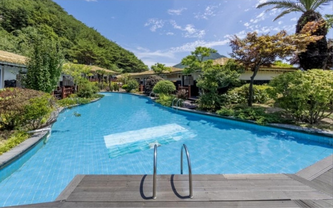 장점 : 멋진 풍경, 한옥 느낌의 객실, 야외 수영장, 야외 개별 스파, 해양 레저 스포츠 이벤트